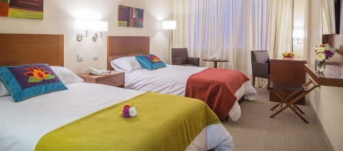 FAMILY PLAN: hasta dos menores compartiendo habitación Twin con sus padres. Sólo desayuno buffet: sin cargo para menores de hasta 10 años. Media pensión (desayuno + almuerzo o cena): $ 60.000 final por noche por cada menor extra.
